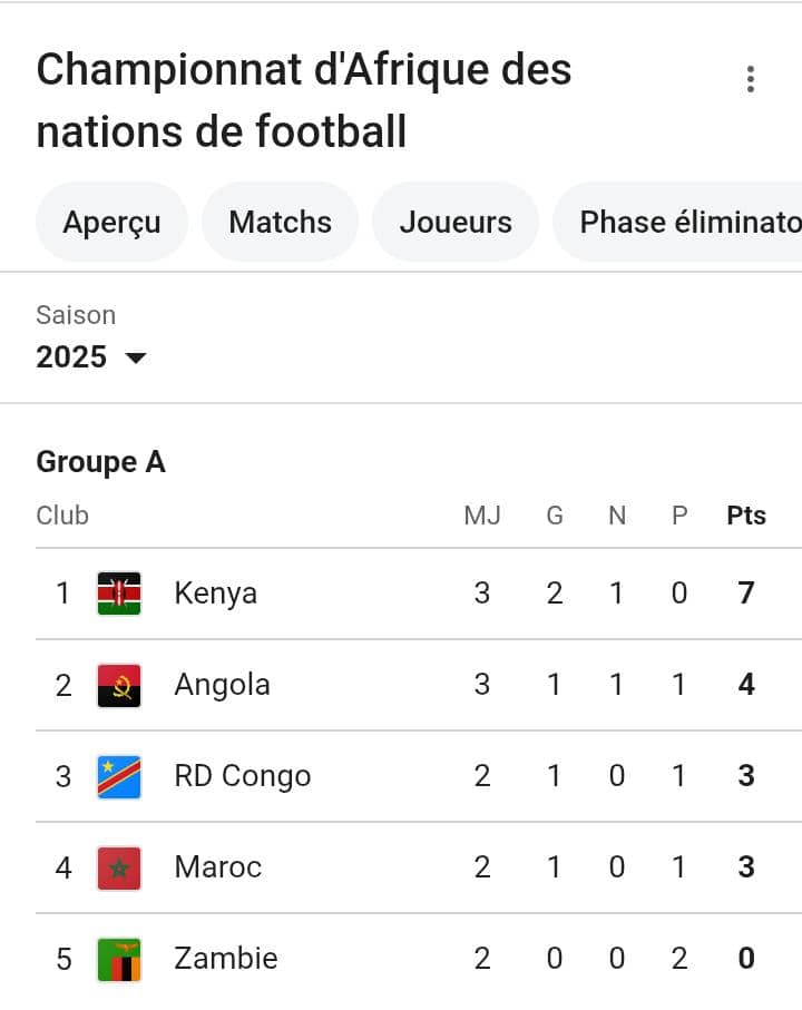 La victoire va stabiliser les espoirs de l’une parmi ces deux équipes dans la phase des groupes pour espérer les quarts de finale, dans cette poule avec le Maroc qui n’a pas encore dit son dernier mot. Et les Lions de l’Atlas reviennent à la quatrième place (avec 3 points), en battant les Palancas Negras, les prochains adversaires des léopards A’, (2-0). Le double champion de l’histoire de ce tournoi africain, va affronter ce même jeudi la Zambie, qui clôture le groupe avec 0 point, en deux matchs.