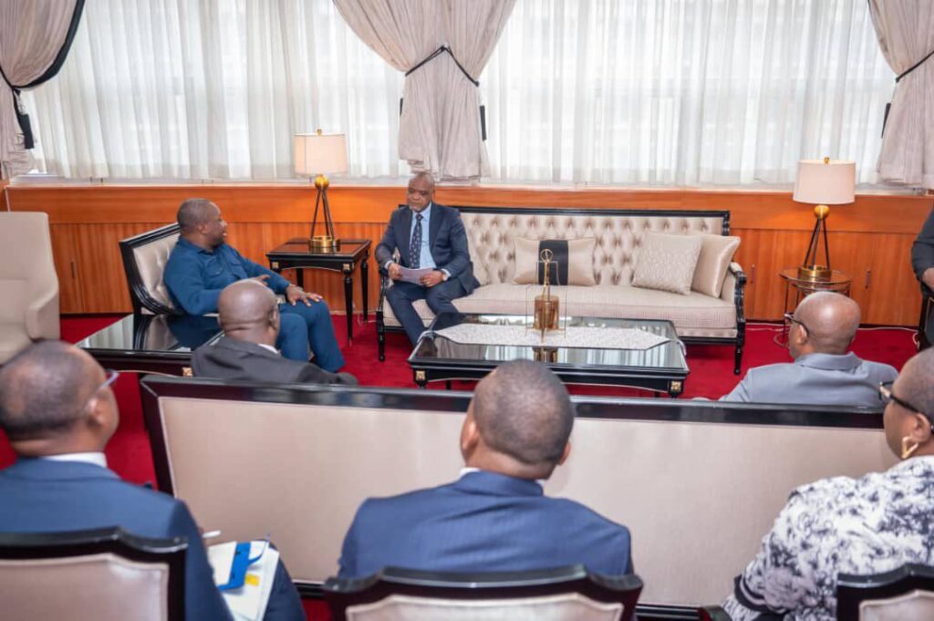 Ce jeudi 24 juillet 2025, Monsieur le Ministre d’État en charge de l’Aménagement du Territoire, Maître Guy Loando Mboyo, a reçu dans son cabinet de travail le Directeur Général de la DGRAD, Maître Étienne Utshudi.
