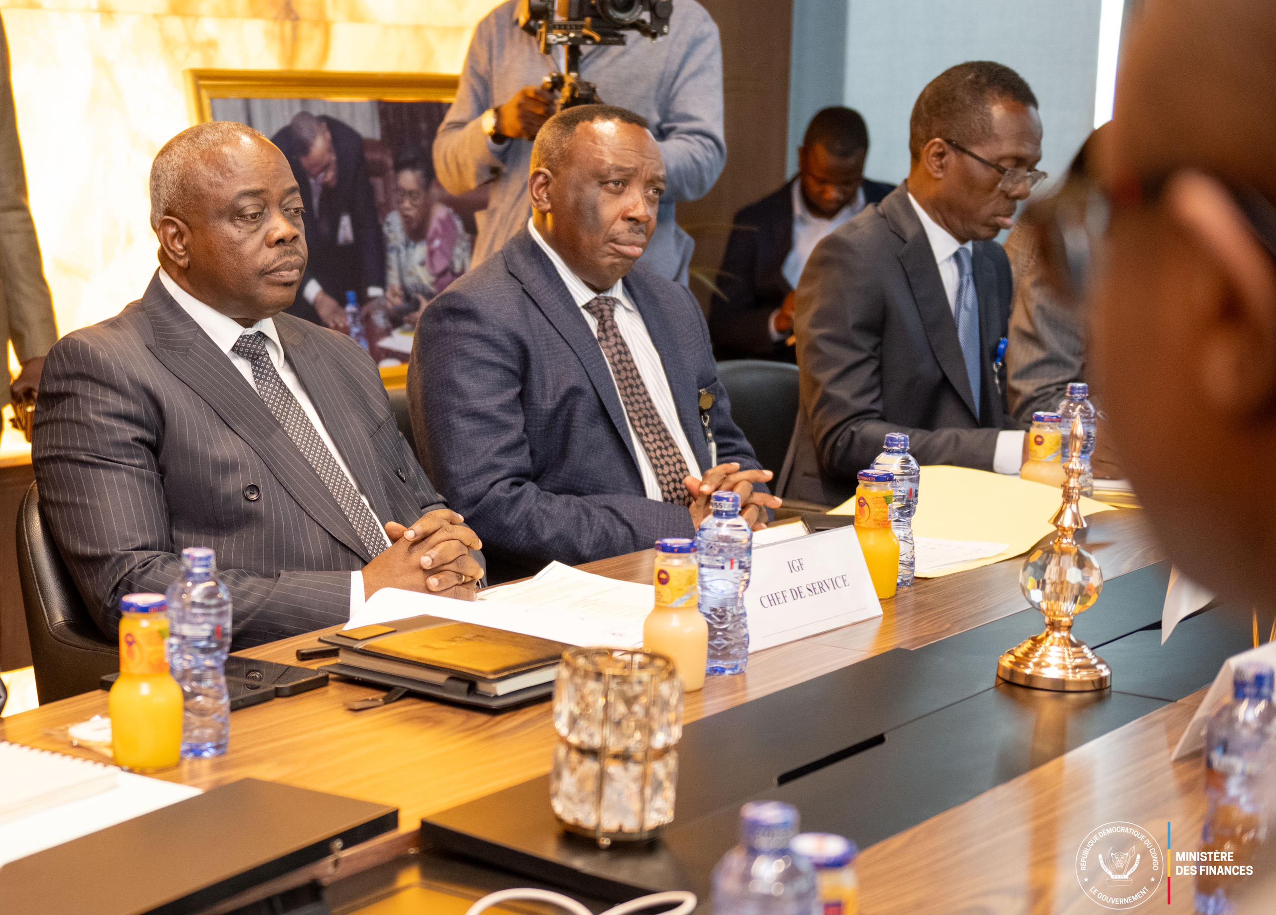 Dans un climat cordial et serein , le Ministre des Finances, Doudou Fwamba Likunde Li-Botayi, a échangé, jeudi dans son cabinet de travail, avec une délégation de l’Inspection Générale des Finances (IGF), conduite par l’Inspecteur Général Chef de Service, Christophe Bitasimwa.